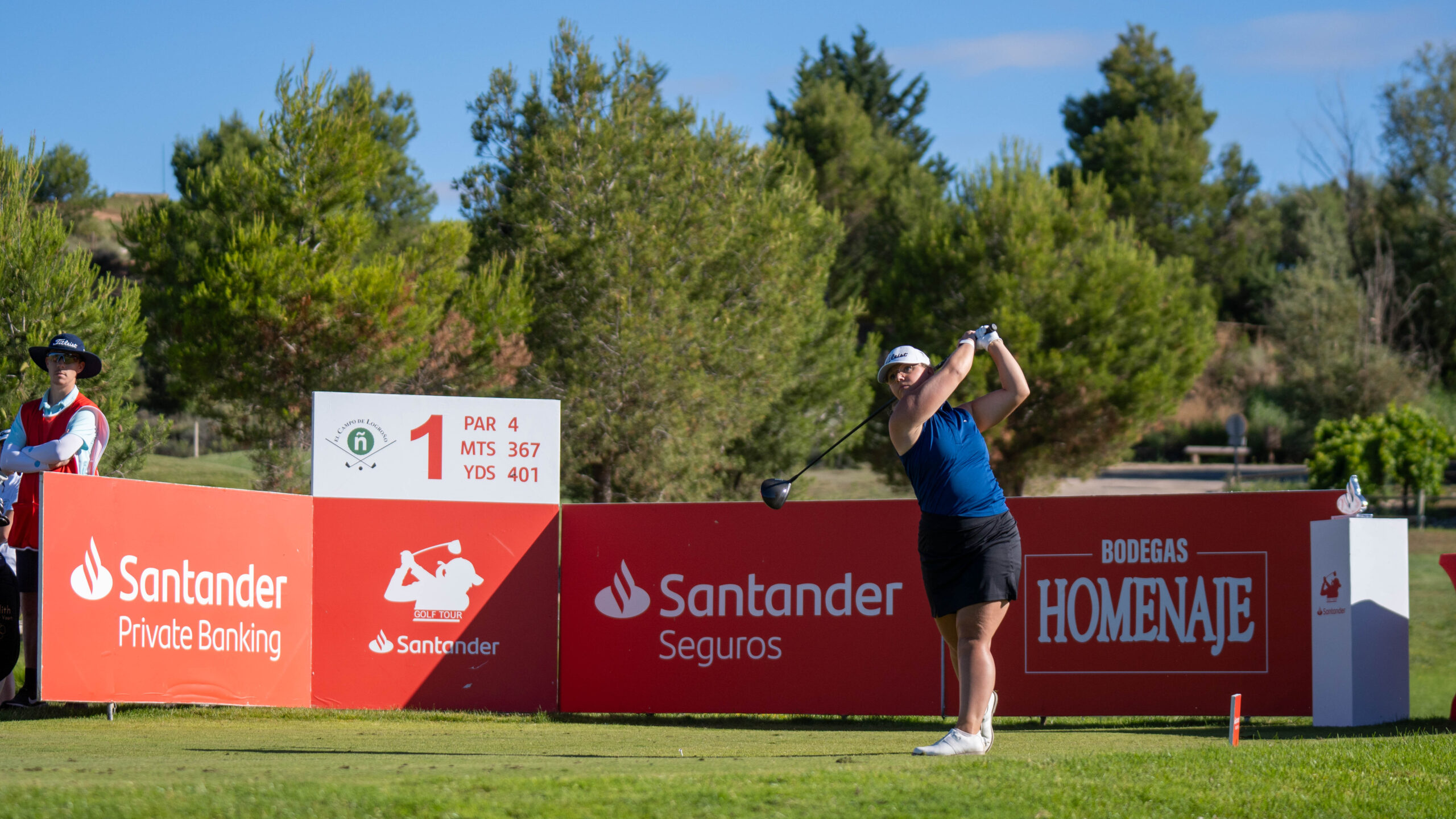 Na een reis van 12 uur vanuit Zweden en snel wat wasjes draaien, moet ik de auto weer in om richting Spanje te gaan. Dit keer gaan we naar Logroño. Het schema is zo druk dat ik tijdens de Pro-Am mijn “voorspeel” ronde had. Tijdens deze dag speelde ik met 4 amateurs die de Santander Tour supporten. Het was super leuk en we konden gelijk de baan goed verkennen. Donderdag 4 juli was de eerste ronde. In de ochtend was het wat frisjes en er was een stevige wind maar gelukkig kwam al snel de zon en begon de temperatuur te stijgen. De baan was lastig en de greens waren snel en geonduleerd. De eerste negen holes had ik daar ook wat moeite mee maar al snel kon ik de knop omzetten en maakte ik 3 birdies oprij. Na een moeilijk slot kwam ik uiteindelijk binnen op een score van +3, 7e plaats. Alle kansen voor ronde 2 op een goede topklassering. Ik begon steady aan mijn ronde en ik wist dat ik geduldig moest blijven en dat mijn kansen op birdies zouden komen. Ik speelde goed en ik begon ook putts te holen. Een dubbel op 15 bracht me terug naar -1 voor de ronde maar op de laatste hole sloeg ik een mooie tweede bal waardoor ik een birdie putt had van 1,5 meter. Yes! De putt ging erin en ik maakte een score van -2 en ik werd derde!